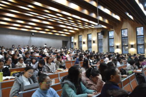 为认真贯彻落实新时代全国高等学校本科教育工作会议精神,对标刚刚结束的学校本科教学工作会议要求,提升英语双学位/双专业本科生的学习能力和学习水平,帮助学生做好即将开始的下学期英语双学位/双专业的选课工作,在学校教务处统一领导和支持下,新葡的京官网于12月5日下午4:30在东校园逸夫楼第一阶梯教室组织召开了全校英语双学位/双专业学生培养方案宣讲会。此次宣讲会共有来自国际商学院、国际新闻与传播学院、国际关系学院、中国语言文学学院、信息科学技术学院、法学院等六个学院的300多名学生参加。新葡的京官网常务副院长蔡鸿、副院长仵胜奇,院长助理廖鸿婧及学院教学办公室的庄双和窦茹苑老师参加了本次宣讲会。此次会议由学院办公室主任匡琳琳老师主持。