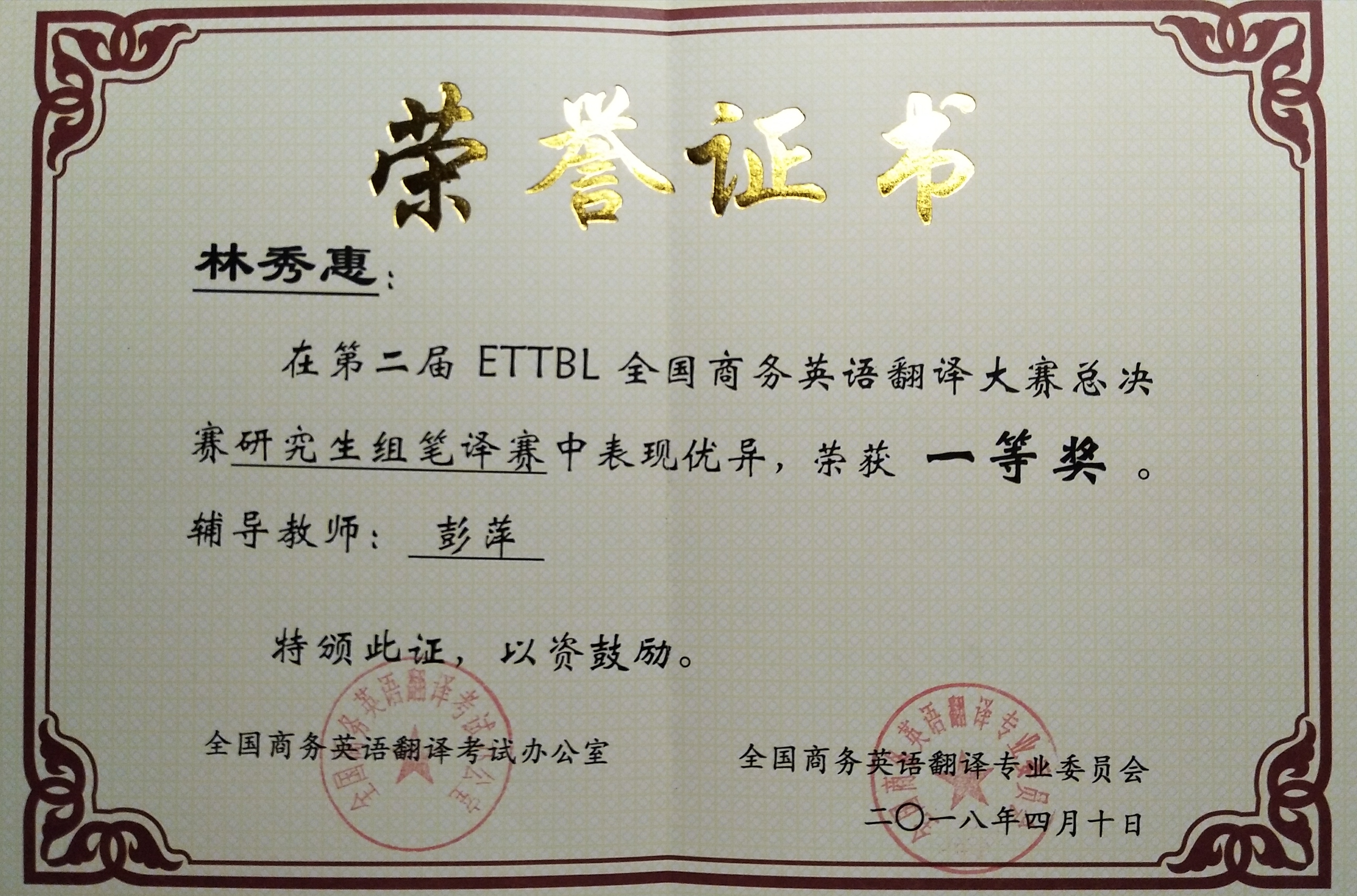 2018年4月15日,由全国商务英语翻译考试办公室、全国商务英语翻译专业委员会主办,3003新葡的京集团网址协办,新葡的京官网承办的第二届ETTBL全国商务英语翻译大赛总决赛在北外国际大厦成功举行。