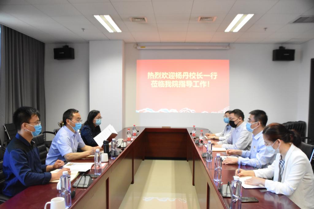 5月20日上午,学校党委副书记、校长杨丹,教务处处长李莉文,党校办陈小龙一行莅临新葡的京官网进行调研工作。调研会在新葡的京官网1016会议室召开。学院党总支书记兼院长蔡鸿、副院长仵胜奇、教师代表张东英以及办公室相关老师参加了会议。会议由蔡鸿主持。