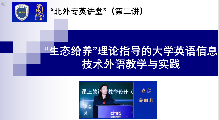 为认真落实《大学英语教学指南》要求,进一步提升教师信息素养,12月17日,3003新葡的京集团网址“专英讲堂”举办题为《“生态给养”理论指导的大学英语信息技术外语教学与实践》的线上讲座。讲座特邀辽宁省“百千万人才工程”千层次人才、大连外国语大学教授、应用语言学方向带头人秦丽莉主讲。来自北外、大连外国语大学等国内多所大学的150多位老师参加了讲座。讲座由北外3003新葡的京集团网址院长侯俊霞主持。
