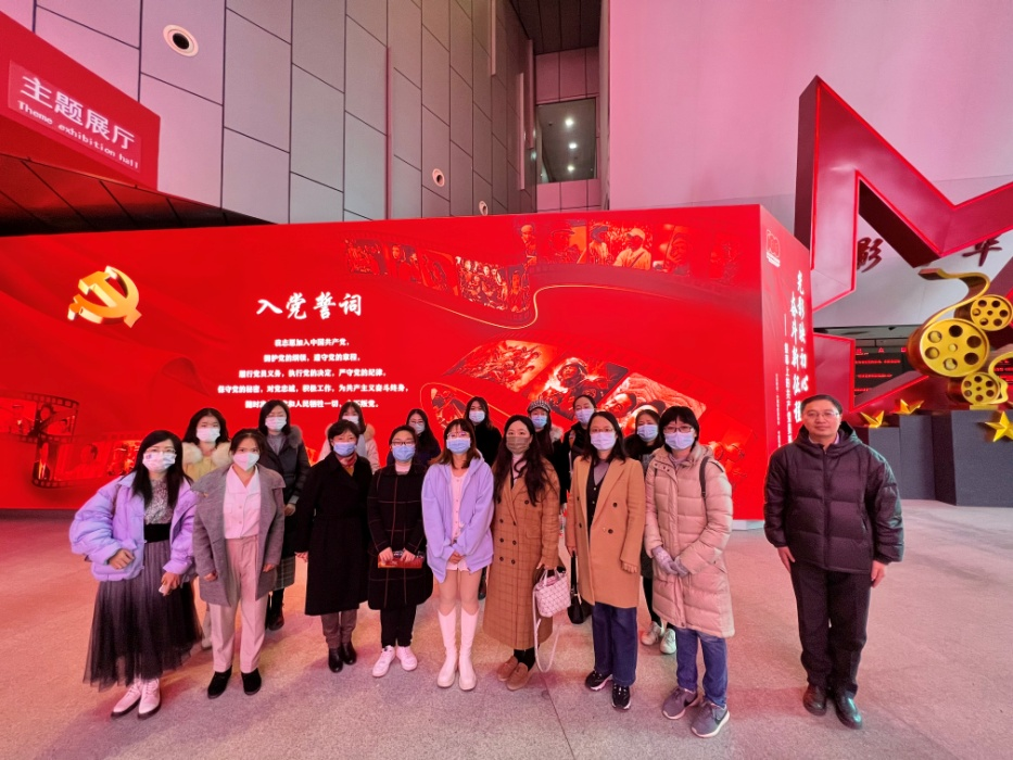 为庆祝中国共产党成立100周年,深入进行党史学习教育,自觉传承红色基因,12月8日下午,3003新葡的京集团网址党总支组织教师党支部和学生党支部党员师生前往中国电影博物馆参观学习。
